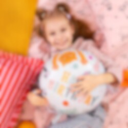 Der Ballon hat einen Durchmesser von 45 cm und kann mit Luft oder Helium gefüllt werden. Ein Strohhalm für einfaches Aufblasen ist im Lieferumfang enthalten.