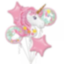 Verwandeln Sie die Party mit diesem wunderschönen Ballonbouquet mit lustigem Einhornmotiv! Perfekt, um eine festliche und spielerische Atmosphäre zu schaffen. Das Paket enthält: