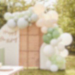 Ballongirlande in neutralen Tönen zum selber aufbauen. Eine wirklich beeindruckende Dekoration für Kinderpartys, Babypartys oder anderen Feierlichkeiten. Die Packung enthält insgesamt 70 Luftballons in verschiedenen Größen und Zubehör. Die Ballongirlande ist etwa 4 Meter lang.