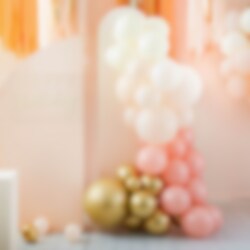 Beeindruckende Ballongirlande in Pfirsich- und Goldtönen zum selber aufbauen. Eine wirklich beeindruckende Dekoration für Partys oder Hochzeiten. Die Packung enthält insgesamt 75 Luftballons in verschiedenen Größen und Zubehör. Die Ballongirlande ist etwa 4 Meter lang.
