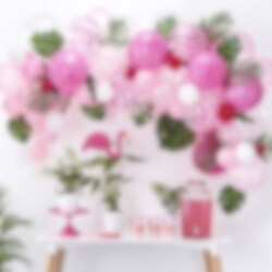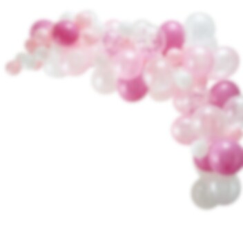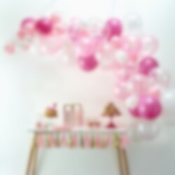 Ausgefallene Ballongirlande in Rosa Farbtönen zum selber aufbauen. Eine wirklich beeindruckende Dekoration für Partys oder Hochzeiten. Die Packung enthält insgesamt 70 Luftballons in verschiedenen Größen und Zubehör. Die Ballongirlande ist etwa 4 Meter lang.
