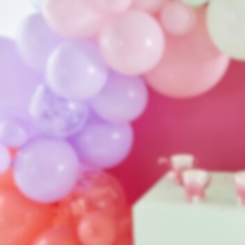 Luxuriöse Ballongirlande in Rosa-, Lila- und Grüntönen zum selber basteln. Eine wirklich schöne Dekoration, die mit einem rosa Dinosaurier-Motto zur Party passt. Die Packung enthält insgesamt 75 Luftballons in verschiedenen Größen und Zubehör. Die Ballongirlande ist etwa 5 Meter lang.