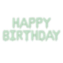 Eine wunderschöne Ballongirlande, die die Worte 'Happy Birthday' in einem schönen hellgrünen Farbton bildet. Die Girlande ist 340 cm lang, und jeder Ballon ist 35 cm hoch. Die Ballons haben ein selbstschließendes Ventil und können ganz einfach mit einer Ballonpumpe oder dem mitgelieferten Strohhalm aufgeblasen werden.