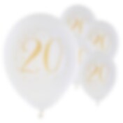 Ballons Weiß & Gold Zahl 20, 8er-Pack