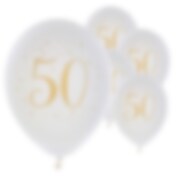 Ballons Weiß & Gold Zahl 50, 8er-Pack