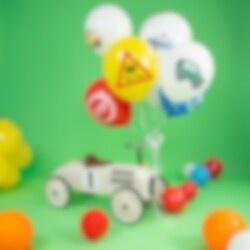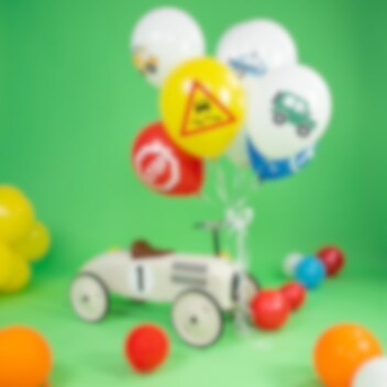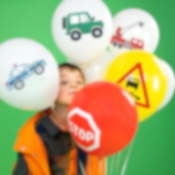 9 bunte Latexballons mit verschiedenen Fahrzeugen und Verkehrsschildern. Sie sind perfekt zur Dekoration für eine Kinderparty mit Fahrzeug-Motto. Die Ballons erreichen einen Durchmesser von etwa 30 cm, wenn sie aufgeblasen sind, und können mit Luft oder Helium gefüllt werden.