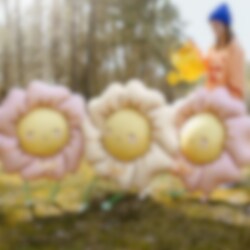Dieser niedliche Folienballon in Blumenform mit fröhlichem Gesicht und sanften Rosatönen ist perfekt für Babypartys, Kindergeburtstage und Sommerfeste.