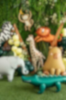 Beeindrucken Sie die Partygäste mit diesem prächtigen Bodenballon in Form einer stehenden Giraffe! Mit ca. 114 cm Höhe und charmanten natürlichen Details ist er ein einzigartiger Blickfang bei Geburtstagsfeiern mit Tierthema, Babyshowers und anderen Feiern.