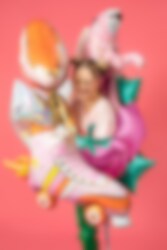 Der Ballon ist etwa 74 x 51 cm groß und kann mit Helium oder Luft gefüllt werden. Für letzteres empfehlen wir eine Ballonpumpe.