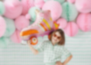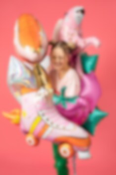 Sehr schöner Folienballon, in Form eines bunten Rollschuhs mit goldfarbenen Details. Eine lustige Dekoration für die Party mit Disco-Motto.