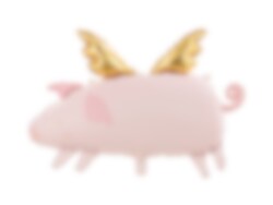 Supersüßer Folienballon, der ein süßes hellrosa Schwein mit goldfolierten Flügeln darstellt. Eine lustige Dekoration für die Kinderparty oder Babyparty.