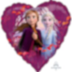 Herzförmiger Folienballon in wunderschönen Farben mit Motiven von Anna und Elsa aus dem Film Frozen 2. Eine schöne Dekoration für die Kinderparty mit dem Thema Frozen. Der Ballon hat im aufgeblasenen Zustand einen Durchmesser von etwa 45 cm und lässt sich am einfachsten mit einer Ballonpumpe oder mit Helium aufblasen.