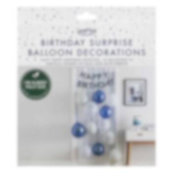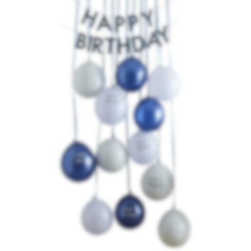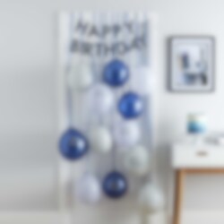 Stilvolles Ballonset in den Farben Dunkelblau, Hellblau und Grau, mit dem Sie Ihre Tür für die Geburtstagsfeier oder Überraschungsparty dekorieren können.