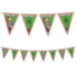 Wimpelkette aus Papier mit Motiven von Minecraft. Eine stilvolle Hängedeko im Partyraum, wenn es Zeit für Festlichkeiten ist.