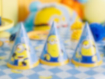 6 Partyhüte im Minions-Design mit einem bunten und verspielten Motiv, das jeden Gast auf die Geburtstagsfeier einstimmt. Die klassischen Partyhüte mit Minions werden ein lustiges Detail, das die Stimmung hebt und sich ideal für die Geburtstagsfeier eignet.