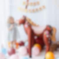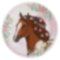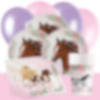 8 Einladungskarten in schönen Farben und mit einem süßen Motiv aus Pferden und Blumen. Laden Sie damit die Gäste zu einer lustigen Pferdeparty ein.