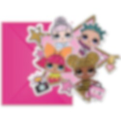 6 Einladungskarten mit einem niedlichen Motiv der Glitterati-Mitglieder aus der LOL Surprise-Puppenserie. Laden Sie damit die Gäste zu einer lustigen LOL Surprise-Mottoparty ein. Die Einladungskarten sind etwa 10,5 x 11 cm groß und im Paket sind zusätzlich 6 pinke Briefumschläge enthalten. Der gesamte Text ist auf Englisch.
