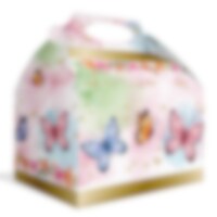 Kreieren Sie ein magisches Fest-Erlebnis mit dieser Geschenkbox, verziert mit wunderschönen Schmetterlingen! Füllen Sie sie mit kleinen Geschenken und Leckereien, um die Party unvergesslich zu machen. Die Box ist einfach zusammenzufalten, besteht aus Pappe und misst ca. 20 x 16 cm. Die Boxen werden einzeln verkauft.