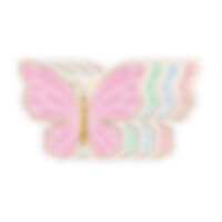 12 Schmetterlingsservietten in schönen Pastellfarben mit goldfolierten Details. Eine perfekte Dekoration für eine Schmetterlingsparty. Die Servietten sind zweilagig und messen 24 x 32 cm im aufgefalteten Zustand.