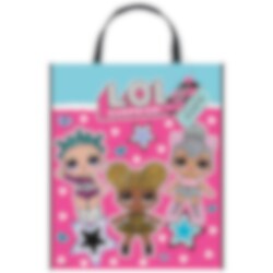 Coole Geschenktüte mit Motiven aus der LOL Surprise Puppenserie. Legen Sie hier das Geschenk des Geburtstagskindes hinein, wenn eine Kinderparty ansteht. Die Geschenktüte ist etwa 33 x 29 cm groß.