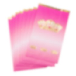 8 Papiertüten in Rosa-Ombré mit goldenen Prinzessinnenkronen, die sich perfekt für Süßigkeiten und andere Überraschungen auf der Kinderparty eignen. Die Tüten sind 20 x 12 cm groß.