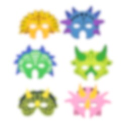 Coole Dinosaurier-Masken aus weichem Schaumstoff in sechs verschiedenen Designs. Damit können sich die Gäste auf der Party als lustige Dinosaurier verkleiden. Die Masken sind bequem und haben ein Gummiband. Die Masken werden einzeln und unsortiert verkauft.