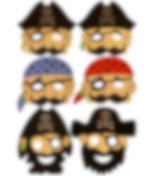 Lustige Piratenmasken aus weichem Schaumstoff in fünf verschiedenen Designs. Damit können sich die Gäste und das Geburtstagskind als coole Piraten verkleiden. Die Masken sind bequem und haben ein Gummiband. Die Masken werden einzeln und unsortiert verkauft.