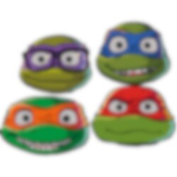 6 Masken aus Pappe mit den verschiedenen Charakteren der Ninja Turtles. Sie sind etwa 20 x 28 cm groß und haben ein elastisches Band, das sie bequem an Ort und Stelle hält.