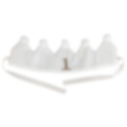 Die Krone ist 23 cm hoch und 40 cm breit und besteht aus 100 % Polyester.