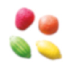 Zutaten: Zucker, Glukosesirup, Kaugummibasis (Sojabohnenlecithin), Aromen, Säuerungsmittel (E296), Überzugsmittel (E901, E903, E904), Farbstoffe: E100, E120, E133, E160c.