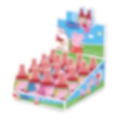 Peppa Wutz Süßigkeitenflasche mit Lutscher und saurem Pulver, in das man den Lutscher eintauchen kann. Erdbeergeschmack. Eine perfekte Überraschung in der Geschenktüte, oder warum nicht auch für den gemütlichen Samstagabend.