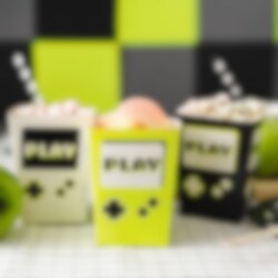 Machen Sie die Kinderparty noch spannender mit diesen coolen Snackboxen im Gaming-Motto. Jede Verpackung enthält sechs Boxen in drei verschiedenen Modellen, perfekt zum Servieren von Snacks, Süßigkeiten oder kleinen Überraschungen für Ihre Gäste. Die Größe der Boxen beträgt 7 x 7 x 12 cm. Besteht aus Pappe.