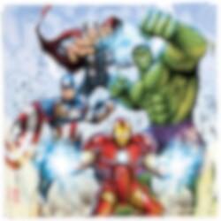 20 Servietten mit einem schönen Motiv der Avengers-Helden. Sehr schön, um den Tisch für die Kinderparty mit einem Superhelden-Motto zu decken. Kombinieren Sie es mit verwandten Artikeln aus demselben Thema für eine stilvolle Tischdekoration.
