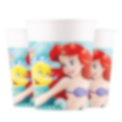 8 Pappbecher mit einem niedlichen Motiv von Prinzessin Ariel. Die Becher sind 10 cm hoch und fassen etwa 200 ml.