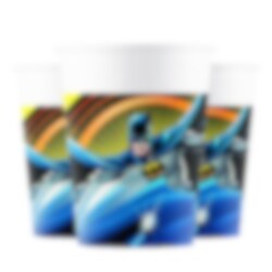 8 Weiße Pappbecher mit coolem Batman-Motiv. Praktisch um den Tisch für eine lustige Party mit Batman-Motto-Party zu decken.