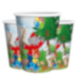 10 süße Pappbecher mit Motiven von Benjamin Blümchen. Die Becher sind 10 cm hoch und fassen 250 ml.