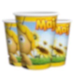 8 bunte Pappbecher mit Motiven von Biene Maja. Die Becher sind 10 cm hoch und fassen 250 ml.