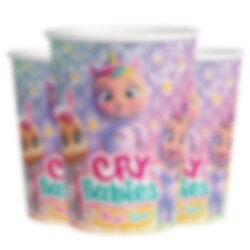 8 Pappbecher mit süßen Cry Babies Motiven. Die Becher sind ca. 10 cm hoch und fassen etwa 200 ml – perfekt für kleine Gäste, um ihre Lieblingsgetränke zu genießen!
