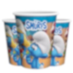 10 süße Pappbecher mit Motiven der Schlümpfe. Die Becher sind 10 cm hoch und fassen 250 ml.