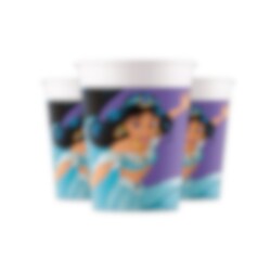 8 schöne Pappbecher mit Prinzessin Jasmine aus Aladdin. Die Becher sind 10 cm hoch und fassen etwa 200 ml.