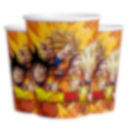 8 Pappbecher mit epischen Dragon Ball Motiven. Die Becher sind ca. 10 cm hoch und fassen etwa 200 ml – perfekt, um den Durst auf einer energiegeladenen Party zu löschen!