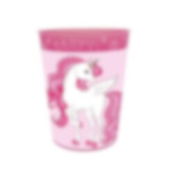 Einhorn Becher aus Hartplastik, der immer wieder verwendet werden kann und auch spülmaschinenfest ist. Die Becher sind eine lustige und etwas andere Alternative zu herkömmlichen Geschenktüten und können mit Süßigkeiten, Snacks und einem Spielzeug gefüllt werden. Das Schöne daran ist, dass die Gäste der Kinderparty den Becher als Erinnerung mit nach Hause nehmen dürfen.