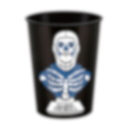 Cooler Souvenirbecher in Schwarz mit einem Skull Trooper aus dem beliebten Videospiel Fortnite. Eine tolle Ergänzung für die Kinderparty. Nach der Feier können die Gäste die Becher als Geschenk behalten.