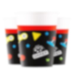 8 Pappbecher mit coolem Gaming-Motiven. Die Becher sind 10 cm hoch und fassen etwa 200 ml.