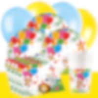 8 Pappbecher mit bunten Motiven von Dschungeltieren und Luftballons. Die Becher sind 10 cm hoch und fassen etwa 200 ml.