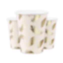 6 Pappbecher mit vergoldeten Schwanfedern. Sehr schönes Accessoires für die Taufe oder Babyparty. Die Becher sind etwa 9 cm hoch und fassen ca. 220 ml.