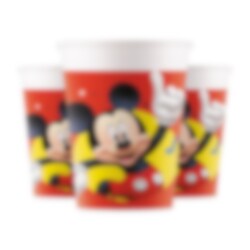 8 Pappbecher in Rot und Weiß mit Motiven von Mickey Maus. Perfekt für eine Mickey Maus-Mottoparty. Die Becher sind 10 cm hoch und fassen etwa 200 ml.