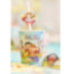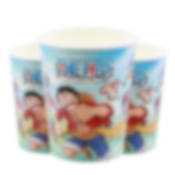 8 Pappbecher mit schönem One Piece Motiv. Die Becher sind etwa 9 cm hoch und fassen etwa 250 ml.