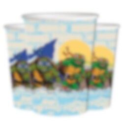 8 Pappbecher mit coolen Ninja Turtles Motiven. Die Becher sind ca. 10 cm hoch und fassen etwa 200 ml – perfekt, um kleinen Ninjas ihre Lieblingsgetränke zu servieren!