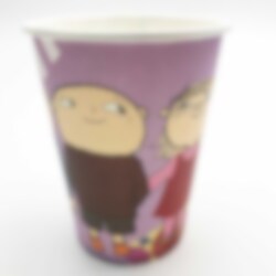 8 Pappbecher mit lustigen Motiven von Willi und seinen Freunden, die Willis Geburtstag feiern, aus Gunilla Bergströms Büchern über Willi Wiberg. Die Becher sind 10 cm hoch und fassen etwa 200 ml.